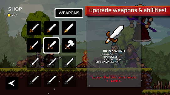 The game’s upgrade system is also pretty admirable, with just about 80 percent of its weapons, skins (which aren’t just cosmetic; they have special stats and abilities) and magical abilities being unlockable by collecting treasure throughout the game. And if you don’t want to grind, you need only watch ads to get 200 coins per watch, which can add up fast, cutting out much of what would otherwise be the same grindy bullshit we see in virtually every other mobile game used to pad out gameplay time while psychologically pressuring players to drop real cash on in-game purchases.