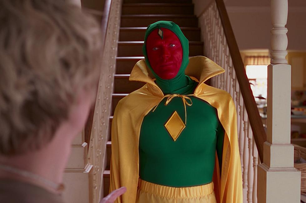 This week’s episode mimics conventions of modern day sitcoms like “Malcolm in the Middle”, and presumably takes place close enough to the modern day for home console versions of “Dance Dance Revolution” to be out. It’s also Halloween, and the showrunners capitalize off this by having Wanda, Vision (Paul Bettany) and Wanda’s brother, Pietro (Evan Peters) dress up in their old comic book outfits as Halloween costumes. Wanda and Vision’s twin sons, Billy (Julian Hilliard) and Tommy (Jett Klyne), have a larger role in this episode, though the focus is really on Wanda, Vision and Pietro.