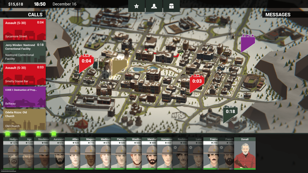 In the beginning, Jack is pressed with the need to reunite with his ex wife, Laura. Before long, a mafia war breaks down in town, and the player must choose which side to support, with accompanying missions and prompts feeding off of their decision. The game stems throughout 180 in-game days, each spent doing the typical job of a police chief, sending off officers to deal with various crimes and help local businesses perform various functions. If that’s all the player could do, the game would grow monotonous very quickly. Thankfully, the game always implants a long term goal into the player’s mind. Right from Day One, Jack Boyd’s end-game goal is expressed to be earning $500,000 before his forced retirement day in six months. That goal remains consistent until the end of the game.