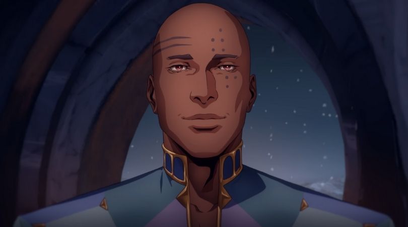 This also leads us to Alucard’s (James Callis) arc. In Season 3, he was left by himself to defend both his father’s (Dracula’s) castle and the Belmont Hold, which hold some of the most valuable knowledge in the world. He ended up getting a boyfriend and girlfriend in two monster hunters who hoped to learn under Alucard to liberate their home of Japan from vampires, but their relationship turned sour when they tried to kill Alucard in bed, suspecting that he was holding information from them. Alucard killed them both, shocked by their betrayal, and mounted their corpses on sticks outside his castle as a warning for potential intruders.