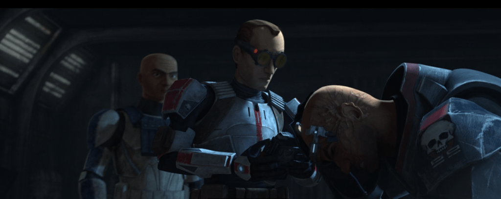 Because we need drama, Wrecker’s chip activates before his procedure can begin, and he almost kills all of the group, if not for Omega (Michelle Ang), who distracts him just long enough for Rex to stun him with his blaster. The episode ends with the group all getting their chips removed, but still facing an uncertain future, as they must weigh joining the rebellion, starting a quiet life where they can raise Omega, or continue bounty hunting and paying off debts they’ve just been slapped with by Cid (Rhea Perlman), who they’ve been doing jobs for.