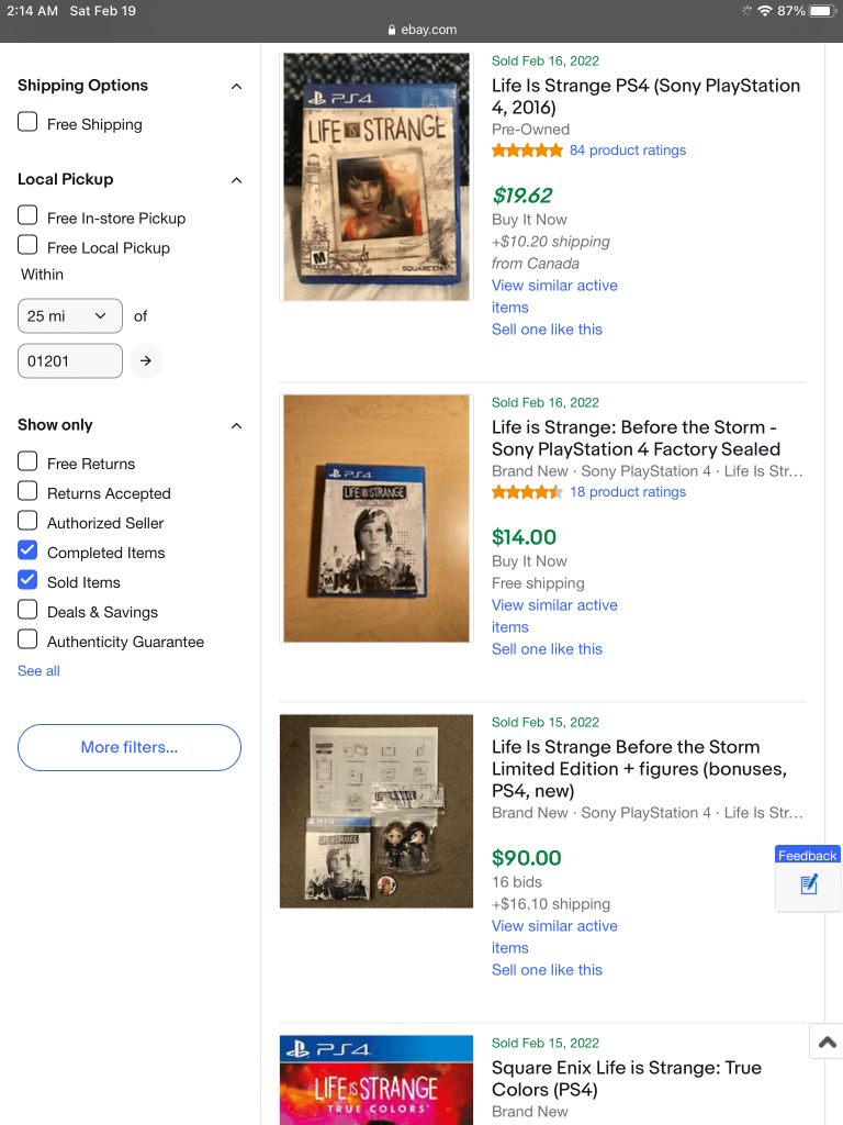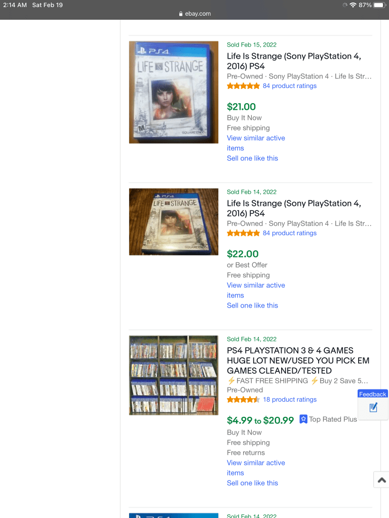 Let’s put that on the back burner for the moment and have a look at how original Life is Strange fares on the EBay market.
