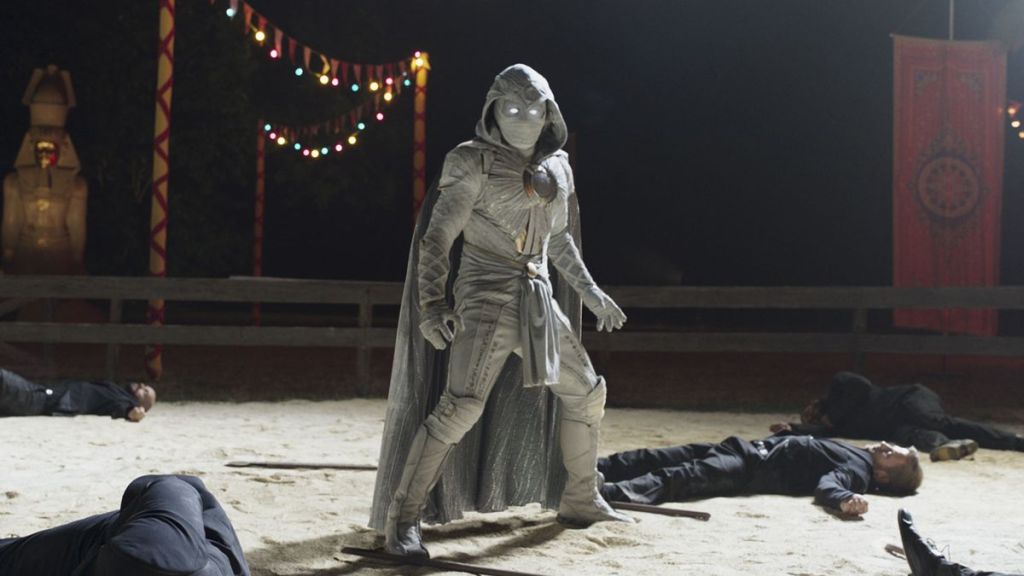 Oscar Isaac plays Steven Grant, a museum worker who suffers from dissociative identity disorder (DID). One night after going asleep, he wakes up in another country, and meets an enigmatic figure named Arthur Carrow (Ethan Hawke). After a chase across the country, Steven wakes up and finds a series of changes-his goldfish regained a fin, he had been asleep for days, and is being chased by a jackal monster and connected with a mysterious figure named Layla (May Calamawy). Carrow visits Stephen at work and reveals that he is in service to the Egyptian goddess Ammit. As the jackal monster returns, Grant lets the strength of an alter ego, Marc Spector, take over and he takes power as the eponymous Moon Knight.