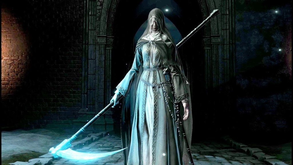 During the second phase, Father Ariandel springs into action. Here, we see a similar dynamic to the Ornstein and Smough dilemma, where the player must try to contend with the speedy, aggressive Friede as well as the large and powerful Ariandel. After they’re defeated, however, Friede will rise again one last time in her extremely imposing Blackflame form, more aggressive and threatening than the previous two phases of the fight. Only by defeating Blackflame Friede can the player finally claim victory.