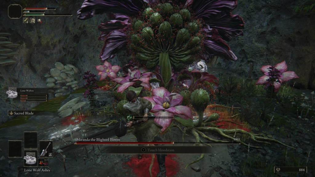 Miranda is essentially a giant piñata that the player can stroll right up to without issue and beat on for a minute or two. Her main gimmick is easily afflicting the player with Poison. As previously mentioned, though, Poison is very weak and will hardly deter the player in Elden Ring. Beyond this, she doesn’t have anything capable of threatening noticeable damage. So a fight against her is such where the player can very simply just walk up to her and spam attacks until she dies. No challenge whatsoever.