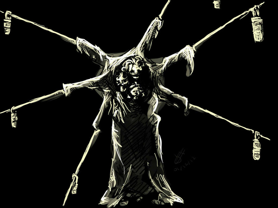 As the name suggests, this boss fight is basically a small army of Deacons, condensed in one area. The gimmick is that only one of the roughly two dozen Deacons can actually be permanently killed- it’s this one the player needs to go for. Once this one has been dealt with, another one will receive it’s status, and this will happen 3-4 times before the fight is over. Fortunately, the one the player is supposed to attack has a big, bright red aura shining on its body, so the player won’t have to guess. The Deacons in general are incredibly sluggish and passive. Most of the fight will involve most of them simply staring at the player as they hack and slash their way through the mob to reach the one Deacon they’re supposed to kill. Occasionally, one of them might actually raise their lackluster candle sword to attack the player. If it hits, it basically does no damage, so no big deal.