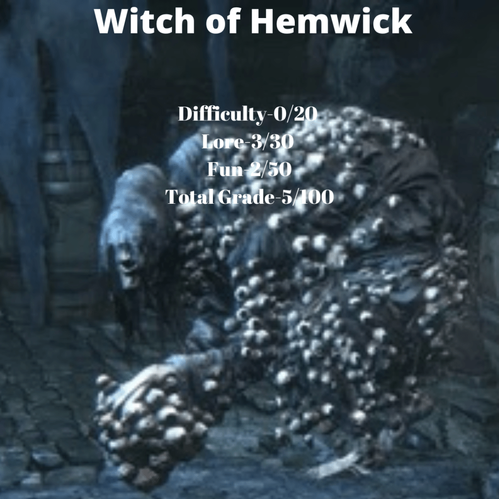 The lore behind the Witch of Hemwick is vague, and does require some fairly significant exploring of the player to unearth. What does develop isn’t much to behold either. Essentially, the Witch of Hemwick is the overseer of Hemwick’s eye collecting. The Healing Church regularly uses body parts, mainly eyes, to conduct rituals with and relies on Hemwick gathering as many as possible to supplement this. This is reflected by the Witch’s aesthetic experience, having a bunch of eyes attached to her body. When defeated, she will also drop a Bloodshot Eyeball, a helpful item needed to strengthen the player’s equipment. Unfortunately, this has very little bearing on the story at large. At most, we know that Hemwick is where the Executioners live, so when spotting an Executioner at Central Yharnam or the Cathedral Ward with multiple caskets full of bodies, we know that the Executioner was sent here by the Witch to collect eyeballs. Other than that, it has no implications outside of this specific fight, justifying its low overall grade for lore.