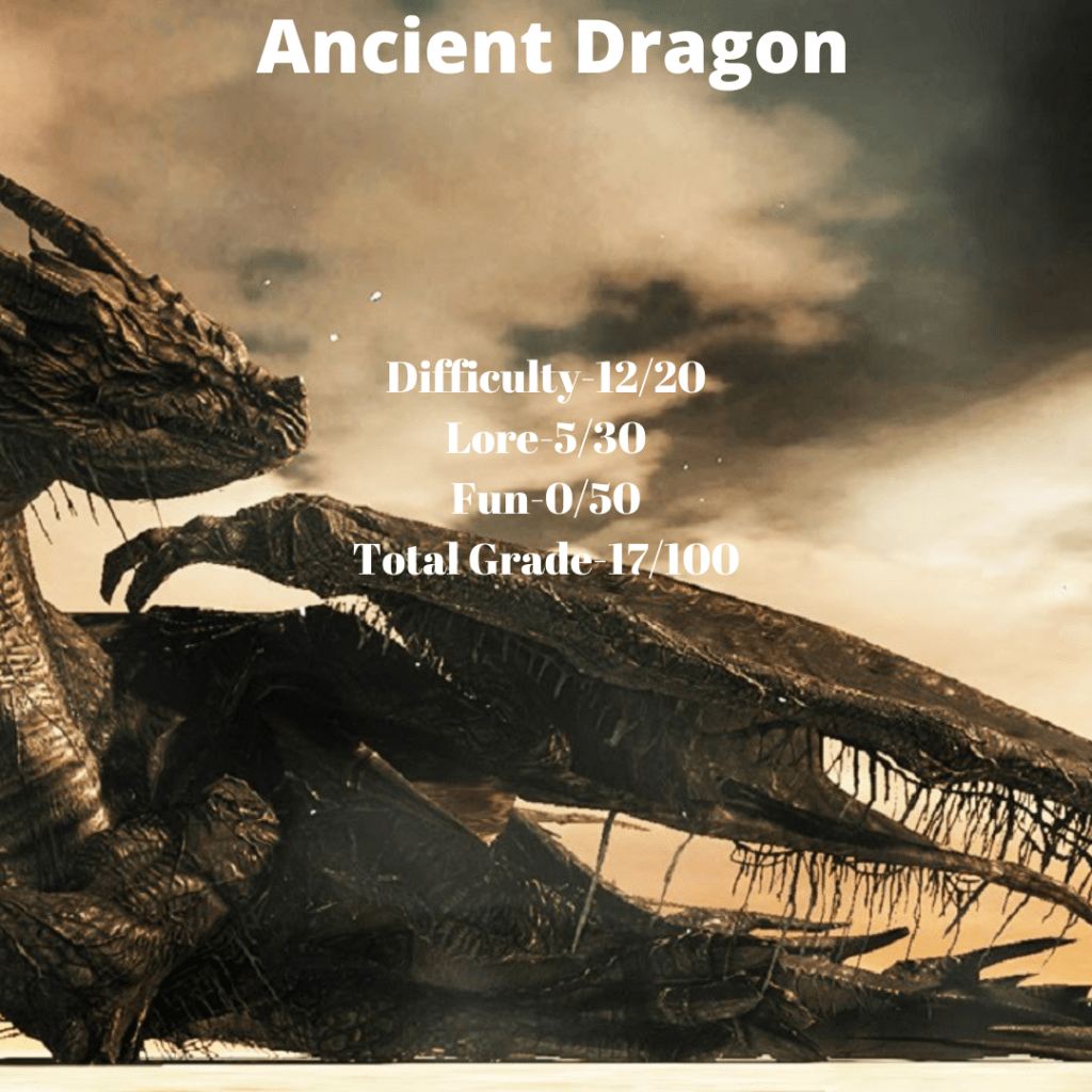 In terms of challenge, this is a difficult one to judge. On one hand, the Ancient Dragon’s raw stats vastly outclass all other bosses in the game. As mentioned, it has no problem killing the player in just two, sometimes even one hit. With a massive health pool, on paper, the Ancient Dragon seems too challenging- simply too overbearing with its massive stats to be able to defeat. Yet, that simply isn’t the case. What the Ancient Dragon has in raw numbers only tries to make up for its horrific move pool. All of its attacks have very easy, ample counterplay and are highly telegraphed. Over the course of an extraordinarily long fight, it is definitely possible for the player to make a lethal mistake as they may grow tired, not being used to such a lengthy affair. Attrition is therefore the main challenge.