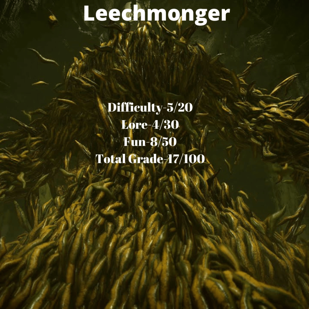 As far as lore goes, there really isn’t much to be found here. Basically, the Leechmonger is a collection of a swarm of leeches which became animate via the fusion of a Demon Soul. It likes to hang out here and attacks things which get too close. Not a lot to go off of.