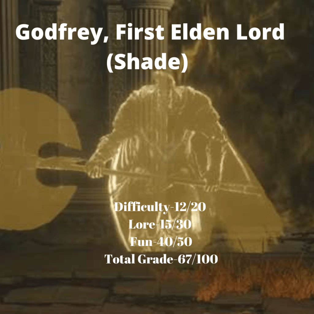 Godfrey essentially acts as a guard of Leyndell, and he is also married to Marika the Eternal, a pivotal character in the game’s plot. It isn’t clear why he has a shade here instead of the real deal, but his impact as a character on the game’s broad overall narrative is simple and notable.