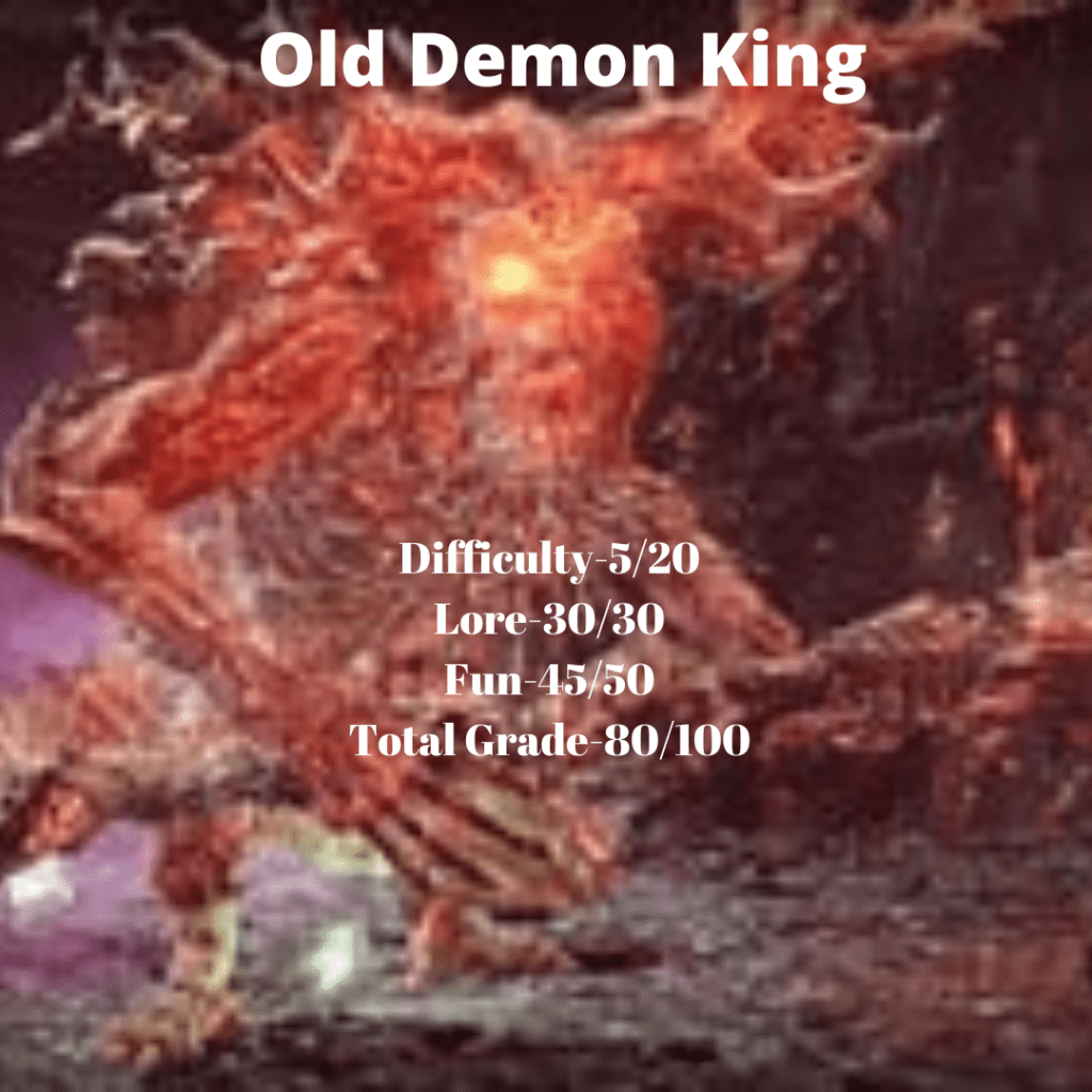 This is probably the best representation of lore fodder done right. The Old Demon King’s combat is slightly lackluster, but his lore and representation of said lore is spot on immaculate, arguably top 5 in all of Soulsborne.