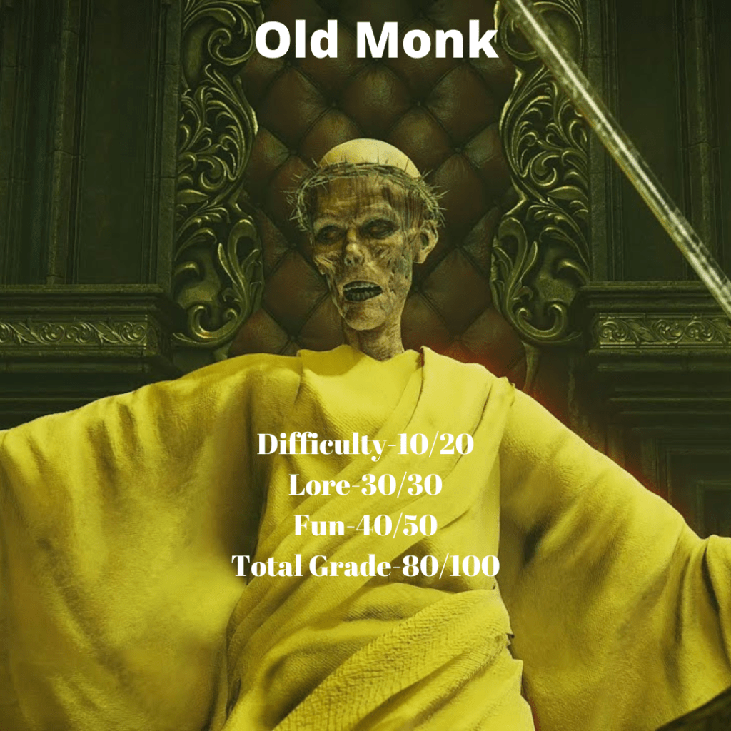 Pretty much the same things said about the Halflight Spear of the Church boss fight in terms of fun can be said here. Still, you may prefer this fight or that one depending on one big thing- do you prefer tons of Chaos and volatility with a completely unpredictable playing field (Halflight Spear) or do you prefer a more mundane, straightforward encounter (Old Monk)? The choice is yours!