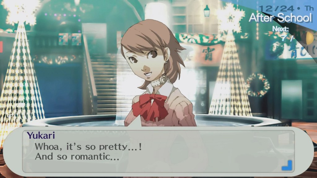 The only genuinely good social link in this game that can compare to Persona 4 or 5’s best would have to be with Aigis, who both protagonists fortunately receive. Unsurprisingly, the player actually travels across the overworld of the game with Aigis, they actually do things, and there’s a significant amount of character development and emotional energy to be enjoyed. This is mostly absent for other characters, even important ones such as Mitsuru Kirijo or Yukari Takeba.