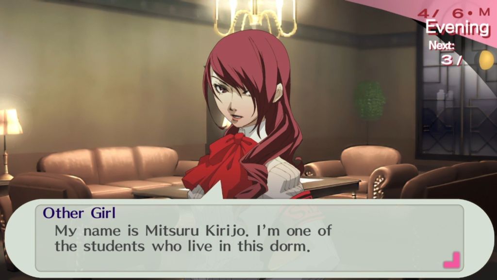 Uniquely, Persona 3 Portable allows the player to choose either the male character Makoto Yumi, or the female character Kotone Shiomi. Compared to a similar game in Pokémon which allows the player to choose their protagonist’s gender, there is an actual tangible difference between playing as one or the other, and this gives the game actual replayability by itself. Several social links and dialogue options change depending on the player’s choice, and the way the game is presented aesthetically and via soundtrack changes as well. The core events of the game remain unchanged, but it’s just enough to feel meaningfully different regardless.