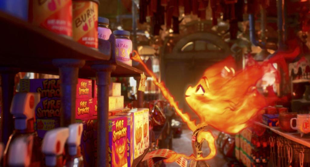 Our protagonist, Ember Lumen (Leah Lewis) is the daughter of fire elementals in Element City’s (its version of New York City) Fire Town. She is set to inherit their shop, the Fireplace, which is a corner store/cafe that’s an anchor in the neighborhood. It’s also her father’s (Ronnie del Carmen) dream.