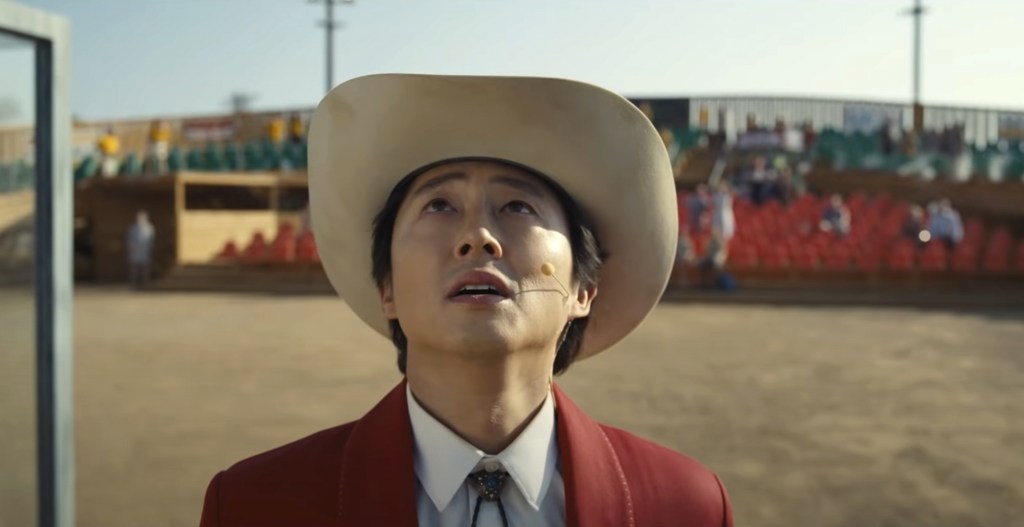 However, this tale gets flipped on its head once we meet Ricky “Jupe” Park (Steven Yeun), who is the owner of a nearby horse show and is a former child star of the 1990s sitcom “Gordy’s Home,” which was cancelled after its titular ape attacked and maimed his co-stars (Ricky was unharmed). We see flashbacks of “Gordy’s Home,” that almost do not connect to the film until we meet the antagonist, who is *spoilers*