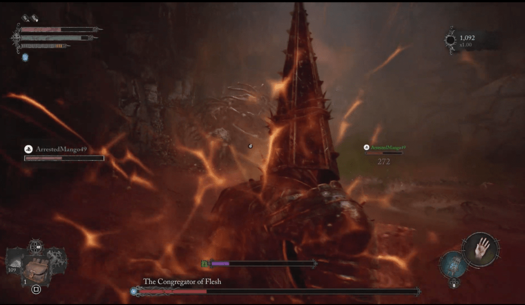 The only boss for whom having a cooperator doesn’t make a total joke would be the tutorial’s Pieta and the aforementioned Judge Cleric. The very next boss after Pieta, and many to follow, were clearly designed with solo players in mind. As well, areas are very enemy dense- these enemies aren’t necessarily challenging, but moreso irritating to fight solo. Bringing a friend along makes the trek from boss to boss a complete joke.
