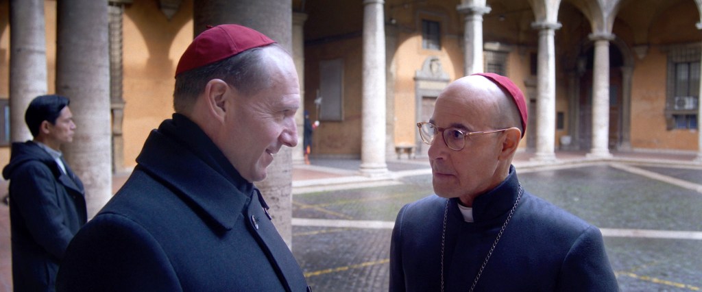 The film portrays a fictional papal conclave of the College of Cardinals led by dean Cardinal Thomas Lawrence (Ralph Fiennes). During the conclave, cardinals are sequestered in the Vatican, and the outside world only knows if a pope has been elected if the color of smoke emanating from a chimney is white.